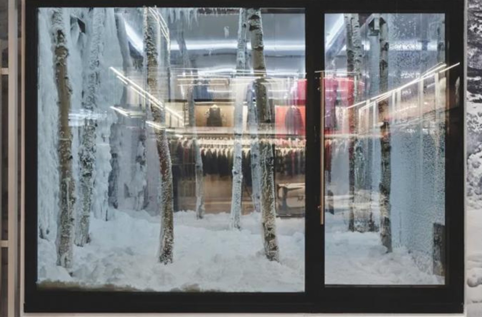 A groundbreaking fusion of art, fashion, and immersive retail. Woolrich unveiled its first US Snow Room at the NYC flagship, transforming the space into a sub-zero environment with real snow, ice, and trees in collaboration with Techno Alpin. To amplify the experience, Woolrich partnered with artist Joshua Vides, who reimagined the store with his signature black-and-white graphic art, creating an Instagram-worthy installation. The launch event, DJed by Mia Moretti, brought together cultural figures including Maggie Gyllenhaal, JiaJia Fei, and Christina Paik, immersing guests in a multi-sensory winter experience. Alongside the installation, Vides introduced a capsule of six hand-painted Gore-Tex Storm Parkas, with proceeds supporting The Bowery Mission. The collection sold out instantly, reinforcing the collaboration’s cultural relevance and commercial success.